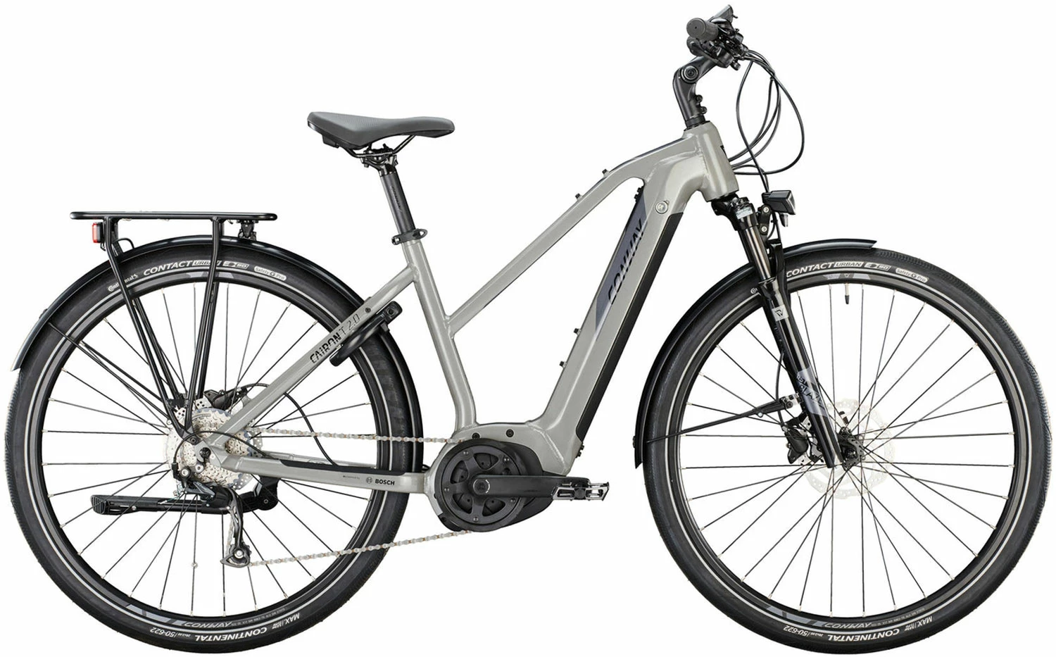 With the Conway Cairon T 2.0 Lady, the name says it all, because the T stands for trekking and touring. The Bosch Gen. 3 Performance motor provides support on long tours and the 500 Wh battery delivers the necessary stamina. The suspension fork provides an extra portion of comfort at any time.