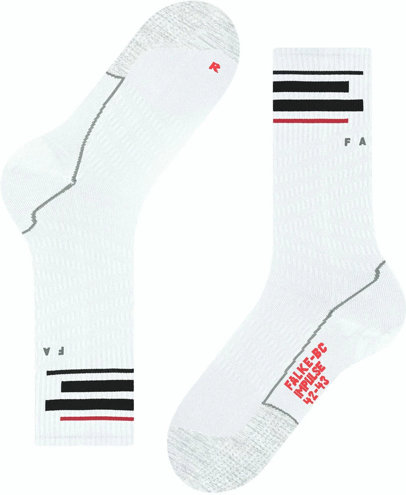 Moreover, the ultra-light padding in combination with the stimulation of the receptors in the ball of the foot and the toes offers improved balance and dynamics as well as immediate power transmission in all cycling shoes. The optimal fit rounds off the functionality of the sports sock. The reflective FALKE lettering also increases safety on the road.