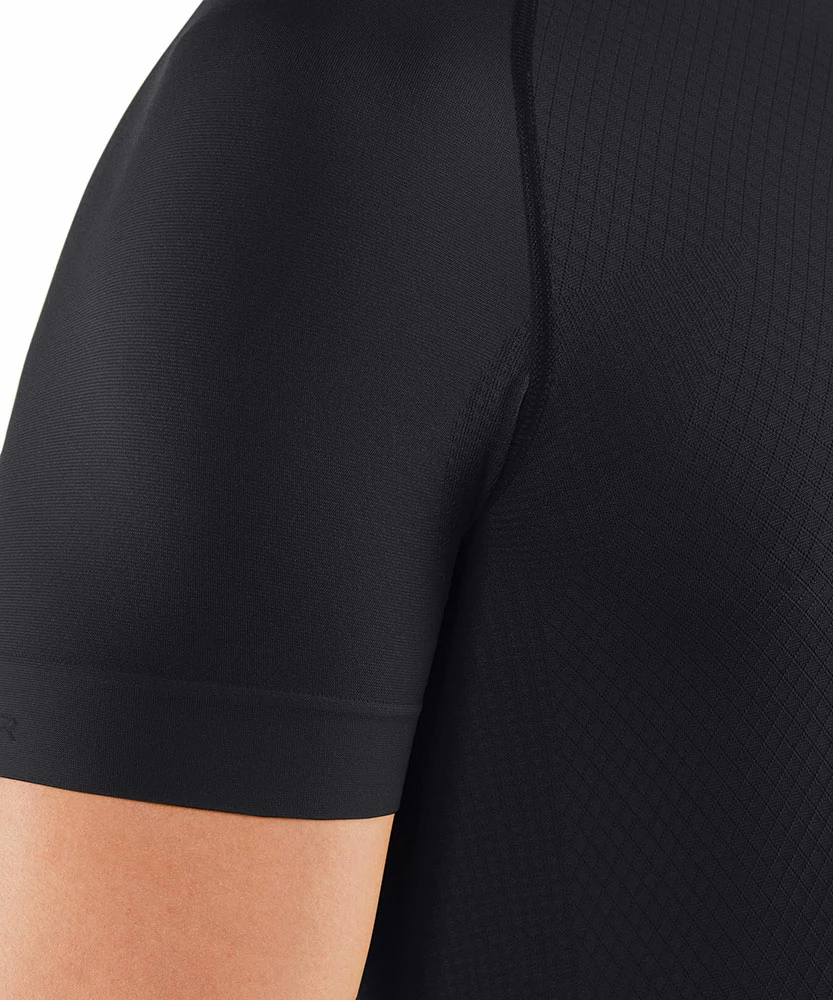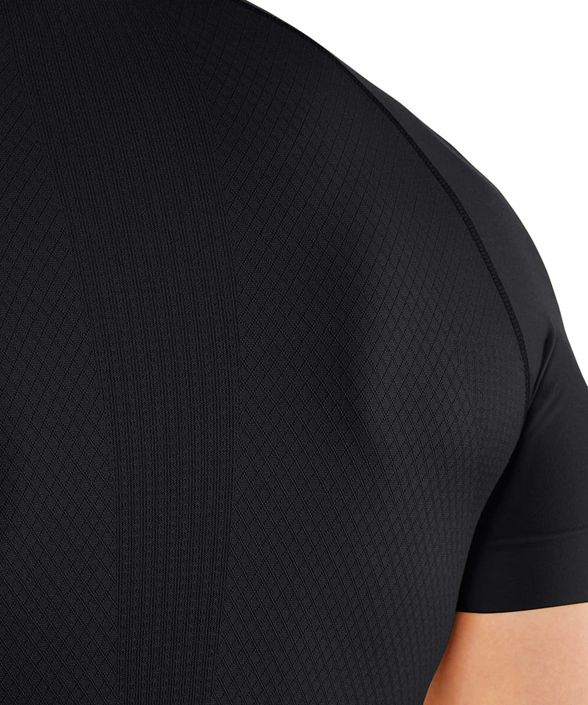 En plus de la matière douce pour la peau, ce t-shirt de sport à manches courtes maintient de manière ciblée les fascias et les muscles et, notamment lorsque les températures sont douces voire froides, ce haut apporte grâce à une isolation thermique équilibrée et un transport rapide de l’humidité un climat de bien-être sec.