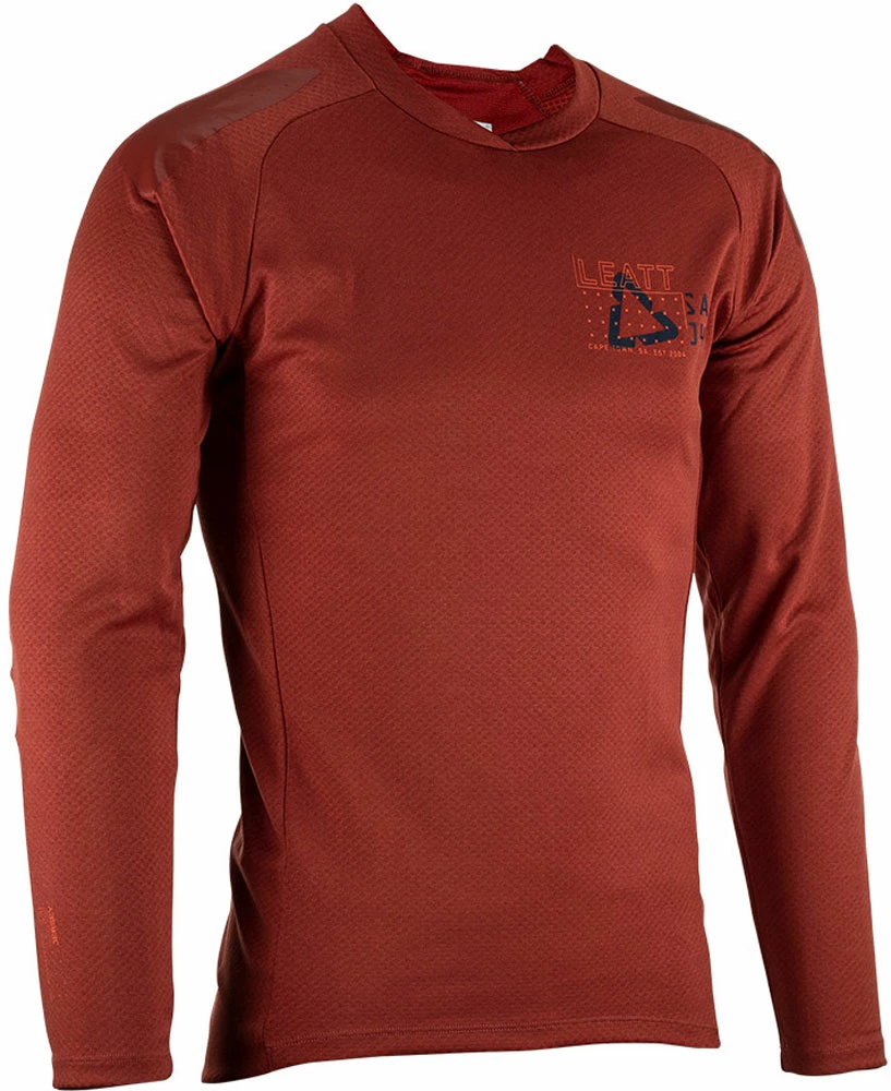 Le populaire maillot 5.0 All Mountain Windblock est fabriqué avec le tissu WarmYarn de Leatt, qui est produit à partir de marc de café recyclé. Le tissu Warm Yarn offre un excellent contrôle de la température et un confort soft-touch de premier ordre.