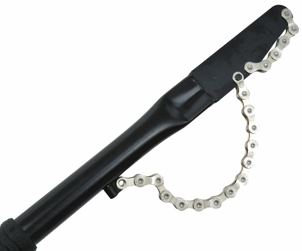 Le fouet à chaîne est un outil important pour le démontage de la cassette de la roue libre. Le fouet à chaîne permet d’appliquer un contrepoids afin de pouvoir desserrer le vissage de la cassette. Le fouet à chaîne maintient quasiment la roue libre par l’intermédiaire de la cassette, qui sert de contrepartie à la bague de fermeture et possède un filetage correspondant. C’est pourquoi un fouet à chaîne est toujours utilisé en combinaison avec un outil pour anneau de fermeture (extracteur de couronne) afin de retirer la cassette.