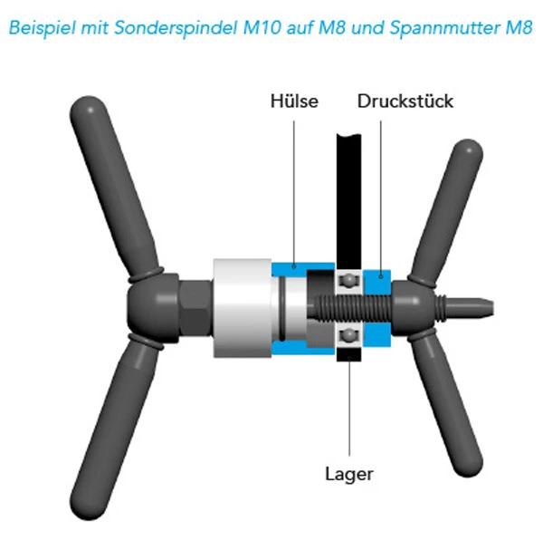 *une broche spéciale M10 à M8 #8219 et un écrou de serrage M8 #8220 sont nécessaires en plus !