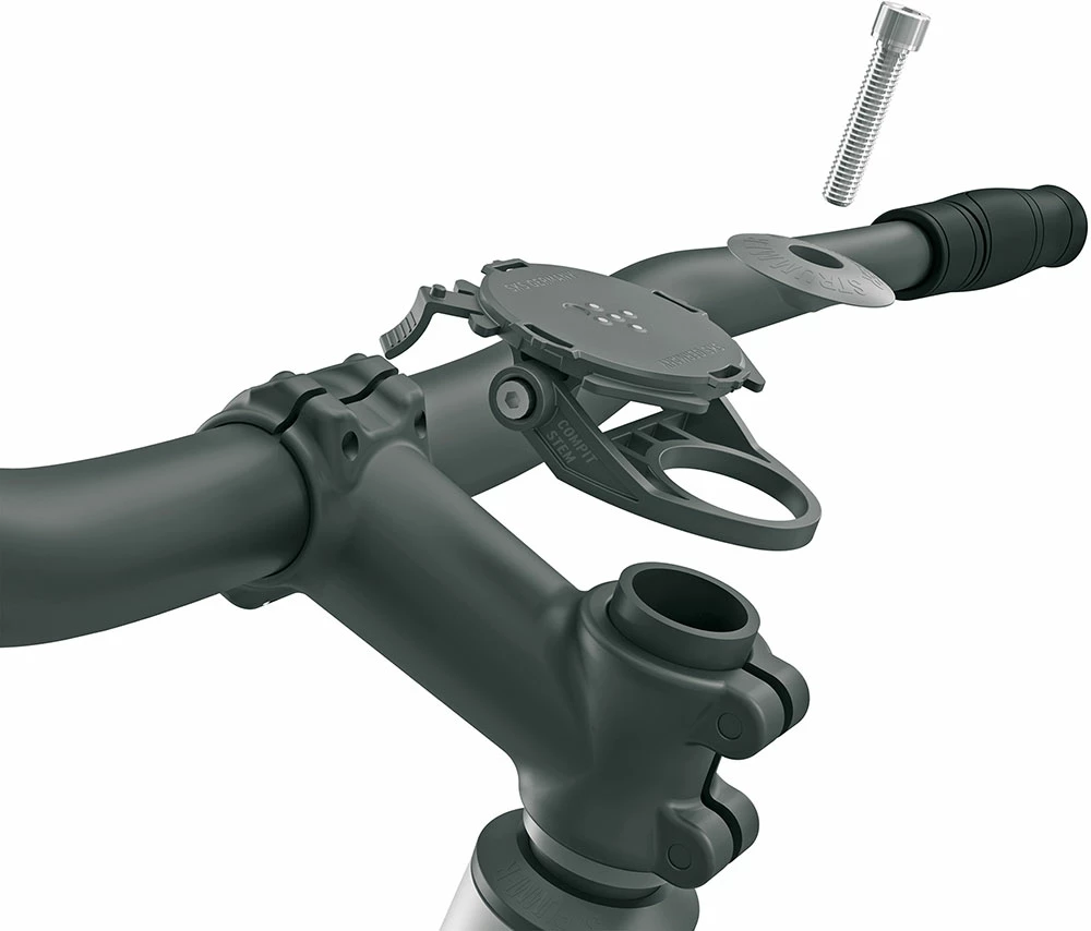 Ainsi, le cockpit reste propre et le guidon libre. Avec son montage sur potence, le support pour téléphone portable offre en outre une solution idéale pour utiliser le système COMPIT également sur les VTT électriques avec un serrage de guidon de 35 mm.