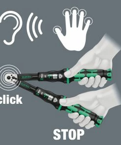 - Parfait dosage de la force: à l’atteinte du couple réglé la clé déclenche en émettant un clic (clic 2) parfaitement audible et ressenti